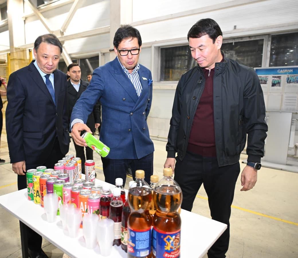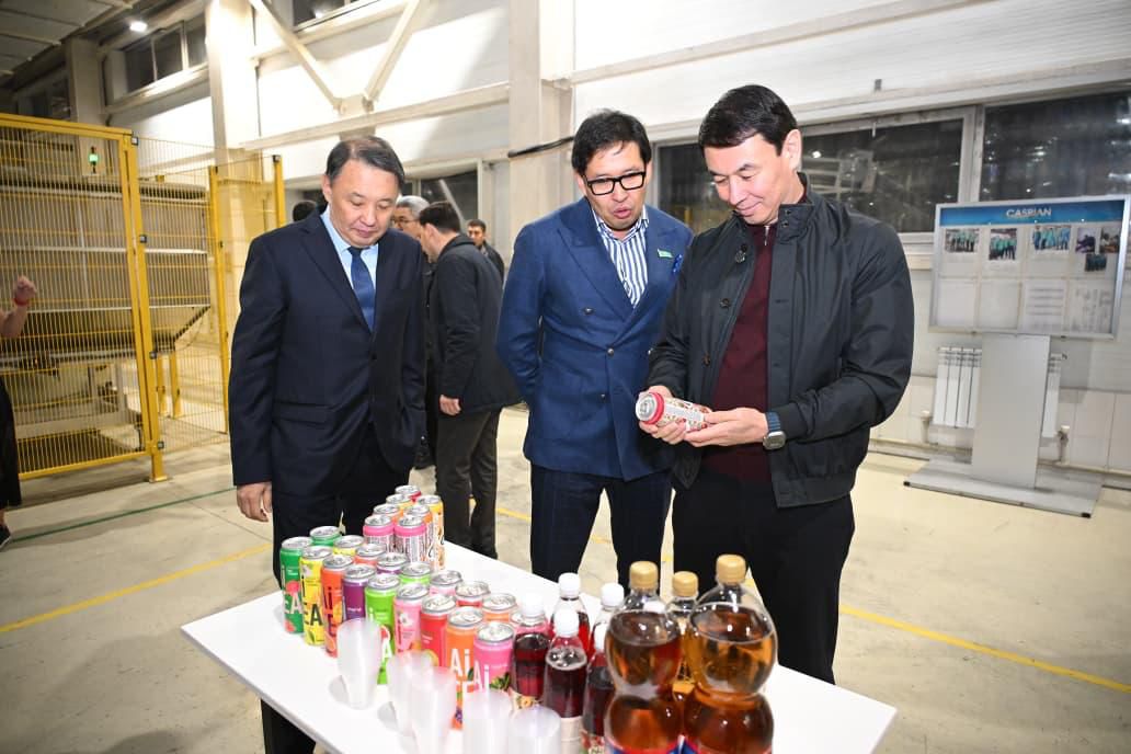 1964 жылы құрылған Caspian Beverage Holding зауытында қала басшысы өндірістік үдерістер мен кәсіпорынның экологиялық бастамаларын көріп қайтты. Компания тәулігіне 500 мыңға дейін сусын бөтелкесін шығарады, 500 адамды жұмыспен қамтып отыр және жыл сайын шамамен 2 млрд теңге көлемінде салық төлейді.
