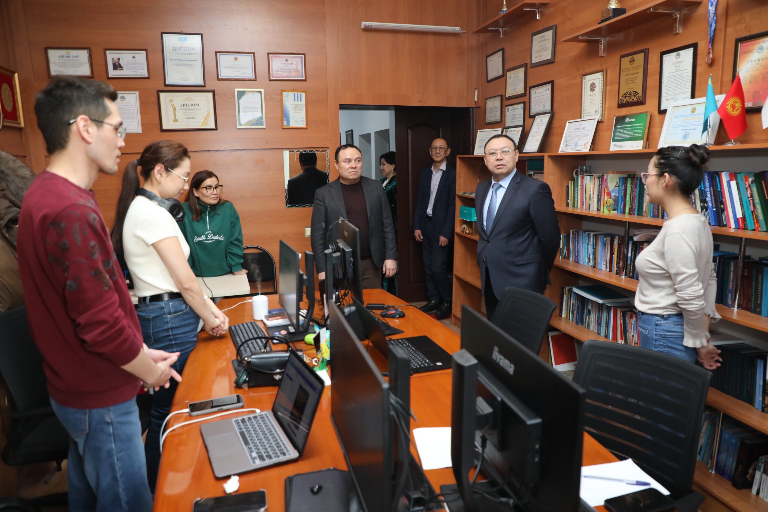 Сонымен бірге әкімнің орынбасары медиахолдингтің музейін тамашалап, Алматы журналистикасының шежіресіне айналған құнды мұралармен танысты. Сонымен қатар, биыл ашылған подкаст студиясының жұмысын көрді.