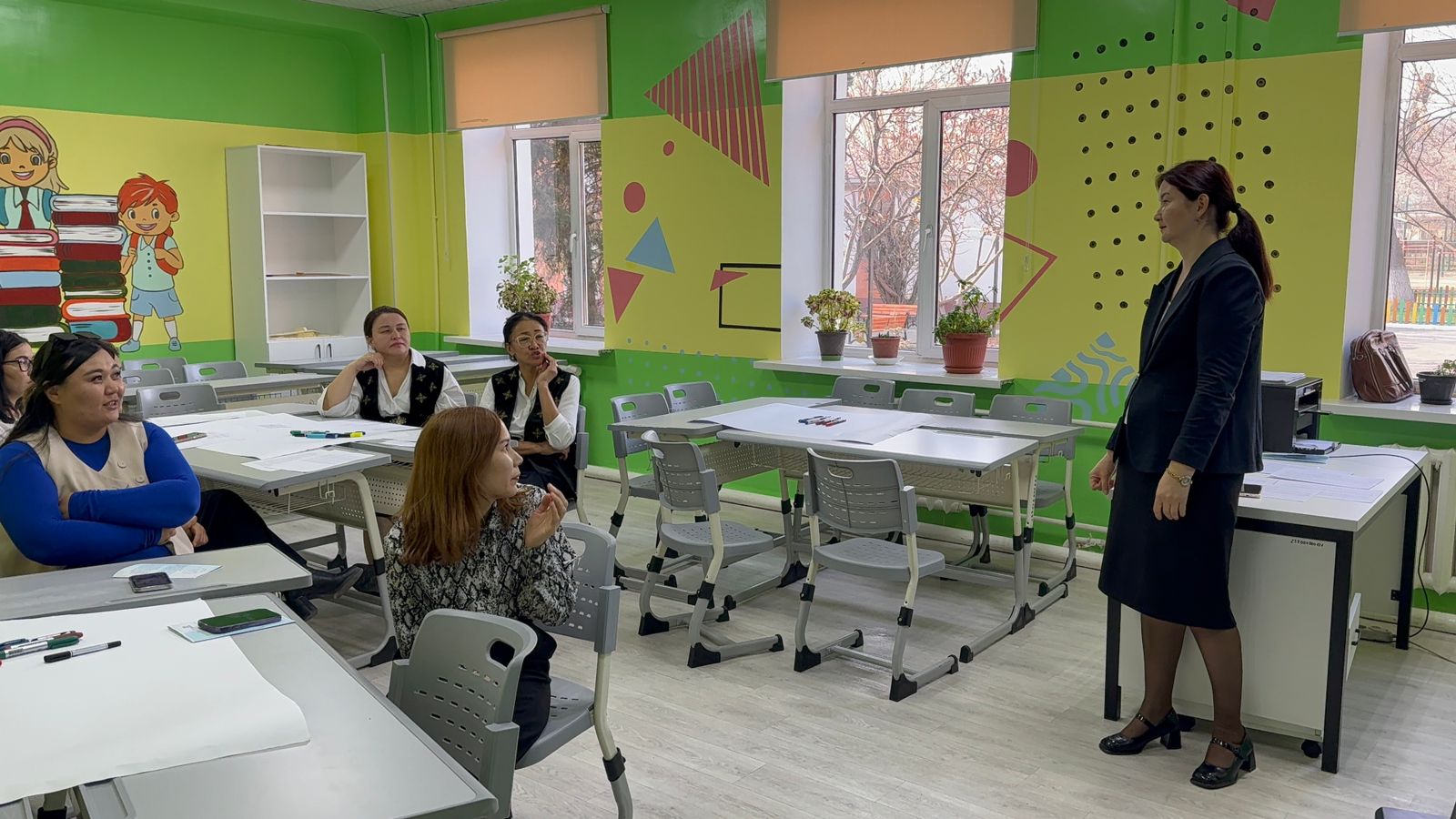Семинар барысында ұстаздар өзара тәжірибе алмасып, заманауи білім беру әдістерін талқылады.