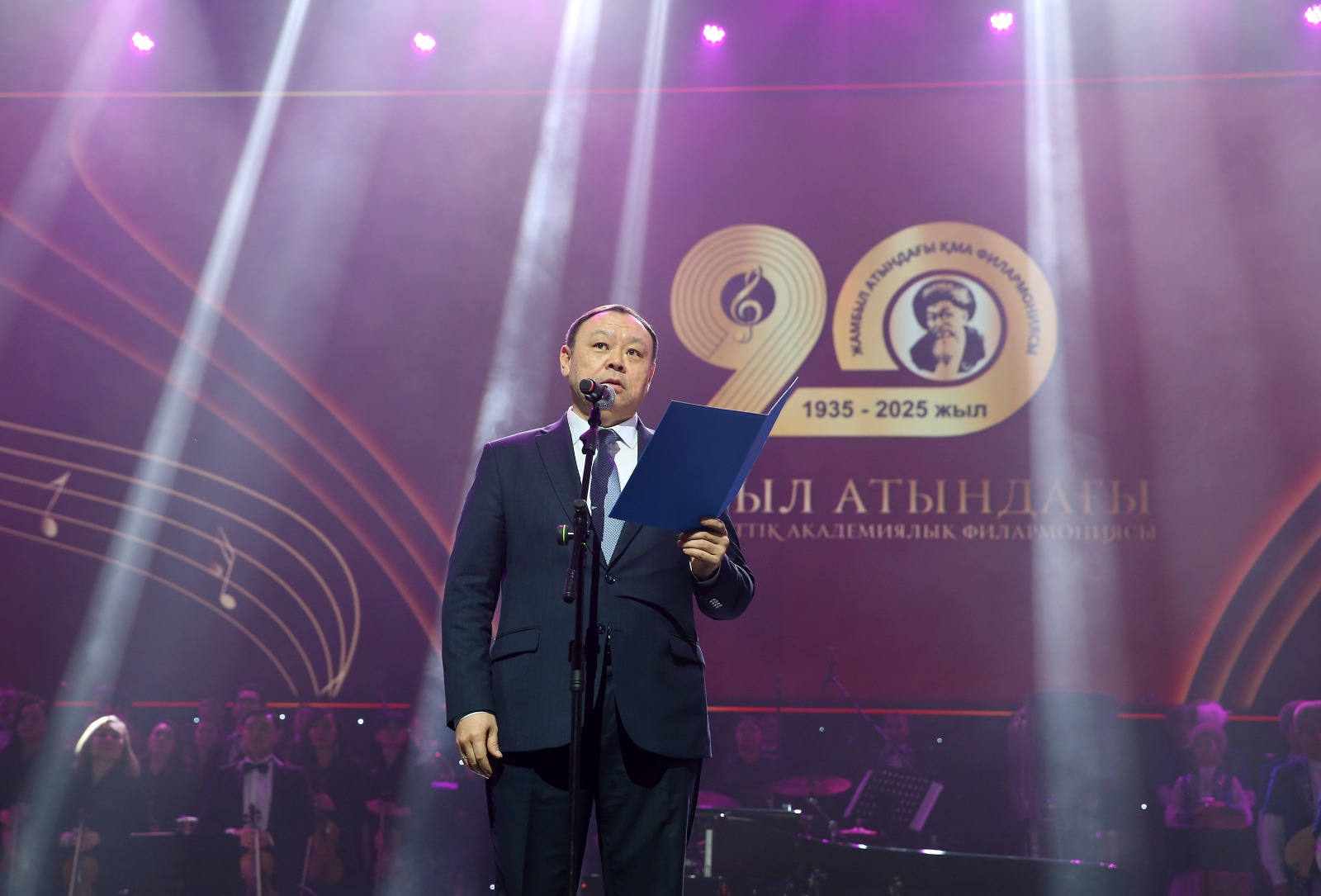 Республика сарайының сахнасында Жамбыл атындағы Қазақ мемлекеттік академиялық филармониясының 90 жылдығы аталып өтті.