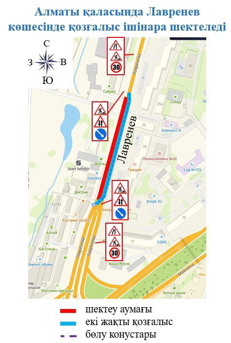 Мамандар анықтаған осы көшенің жүру бөлігінің астынан өтетін жылумен жабдықтау желілерінде асфальт жабынының шөгуін жою үшін уақытша шектеулер енгізіледі. Жұмыстарды мердігер ұйым кепілдік міндеттемелері шеңберінде жүргізетін болады.