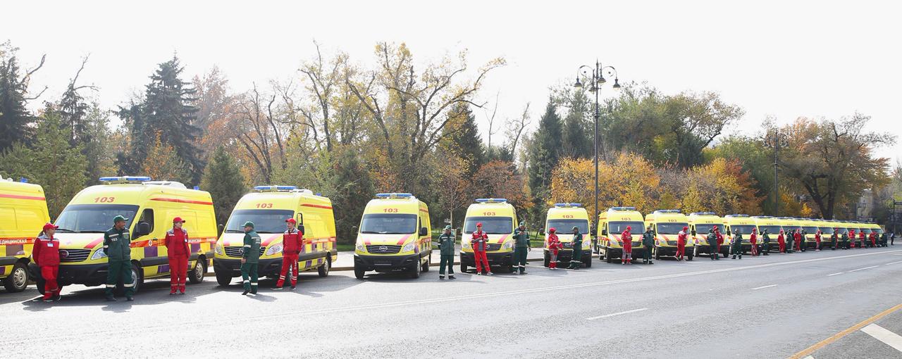 Республика күні қарсаңында Алматыда Жедел медициналық жәрдем қызметіне 50 жаңа арнайы автокөлікті тапсыру рәсімі өтті. Көліктердің кілтін қала әкімі Дархан Сатыбалды табыстады.