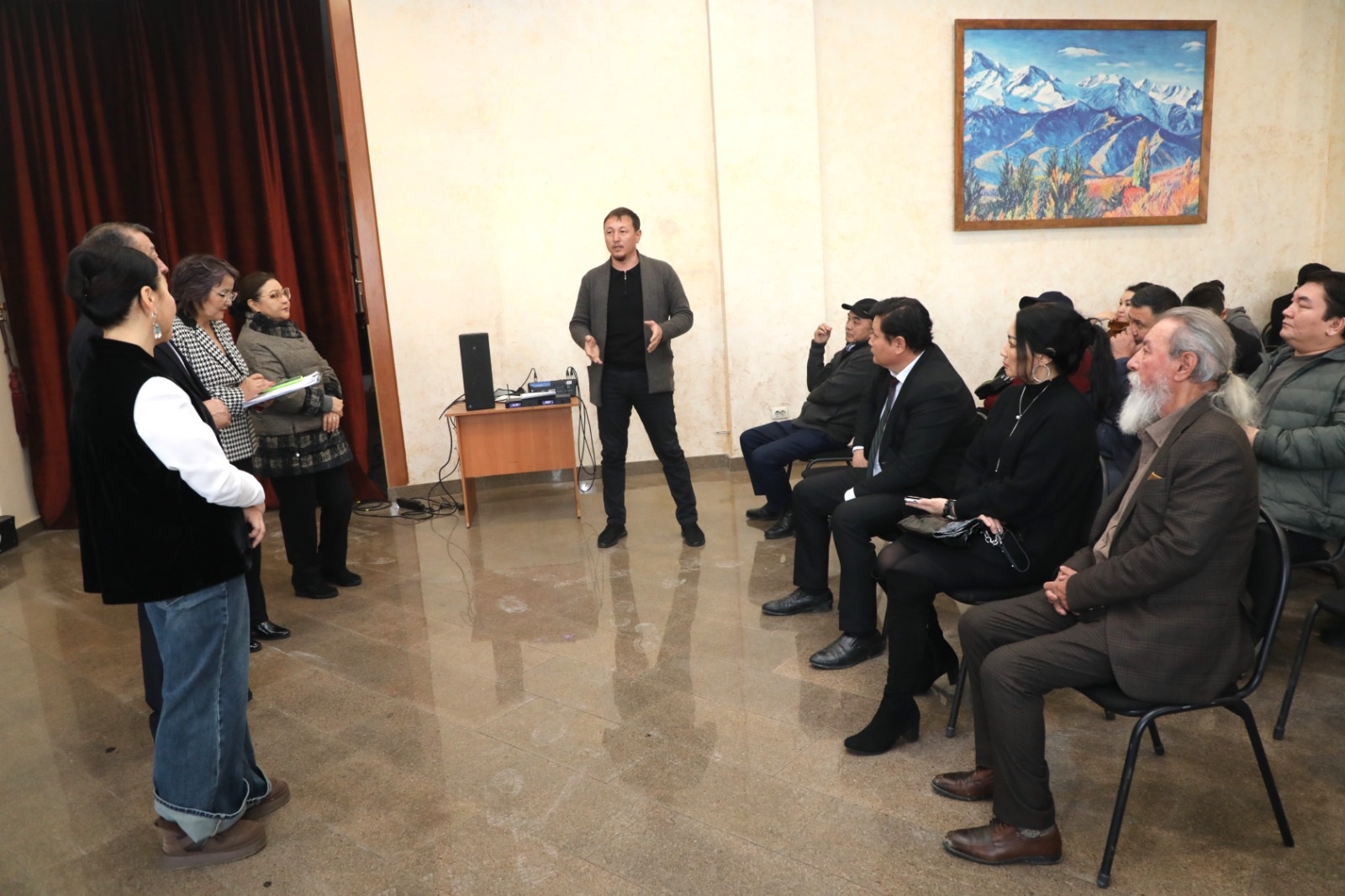 Ал өз кезегінде «Алатау» театры ұжымы атынан сөз сөйлеген өнер өкілдері конституциялық реформаны қолдайтындарын білдірді.