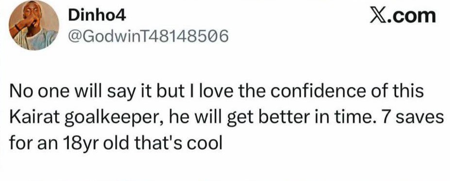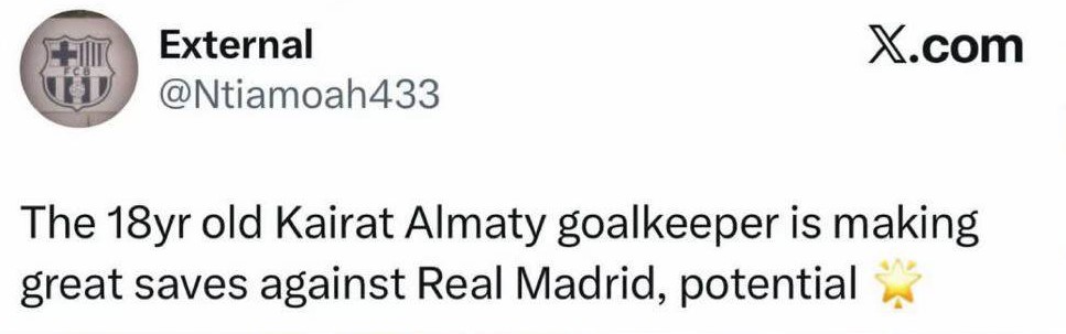 "Мұны көп ешкім айтып жатқан жоқ бірақ, "Қайраттың" 18 жастағы қақпашысының сенімділігі ұнайды. Уақыт өте келе ол шыңдала түседі. 18 жастағы қақпашы үшін "Реалға" қарсы 7 сейв керемет нәтиже" деп жазды тағы бірі.