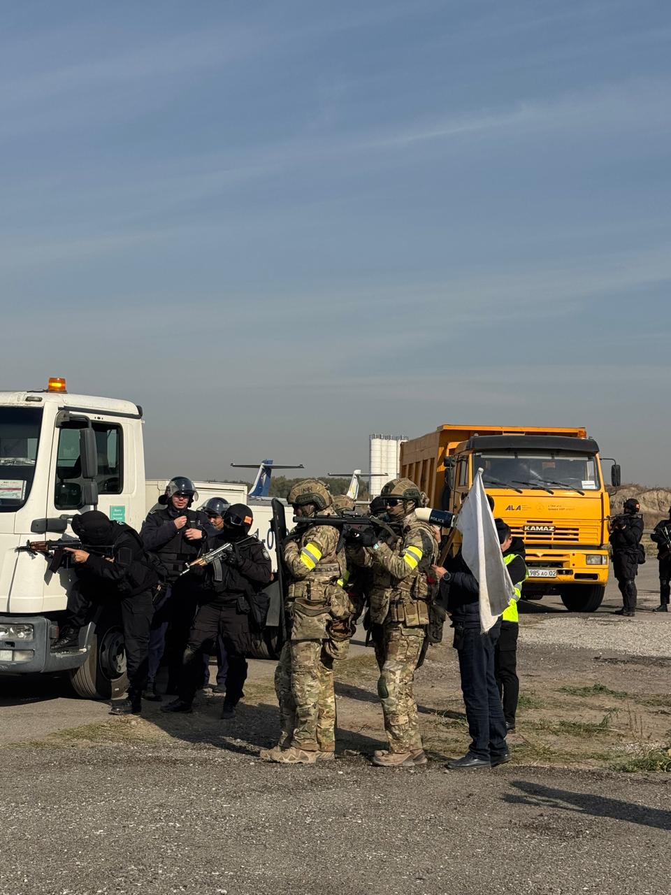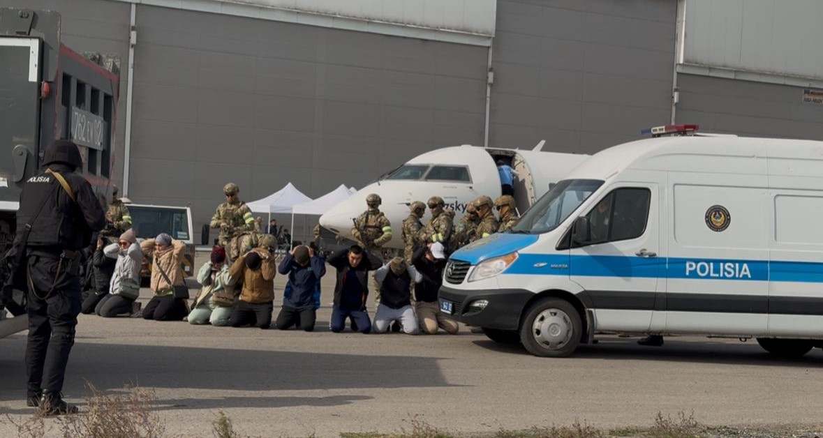 Алматы халықаралық әуежайы аумағында терроризмге қарсы жоспарлы оқу-жаттығу өткізілді. Алматы қалалық жедел штабы ұйымдастырған шара аясында террорлық қауіптің «қызыл деңгейі» жарияланып, арнайы жасақ сарбаздары «содырларды» ұстап, «тұтқындарды» босатты.