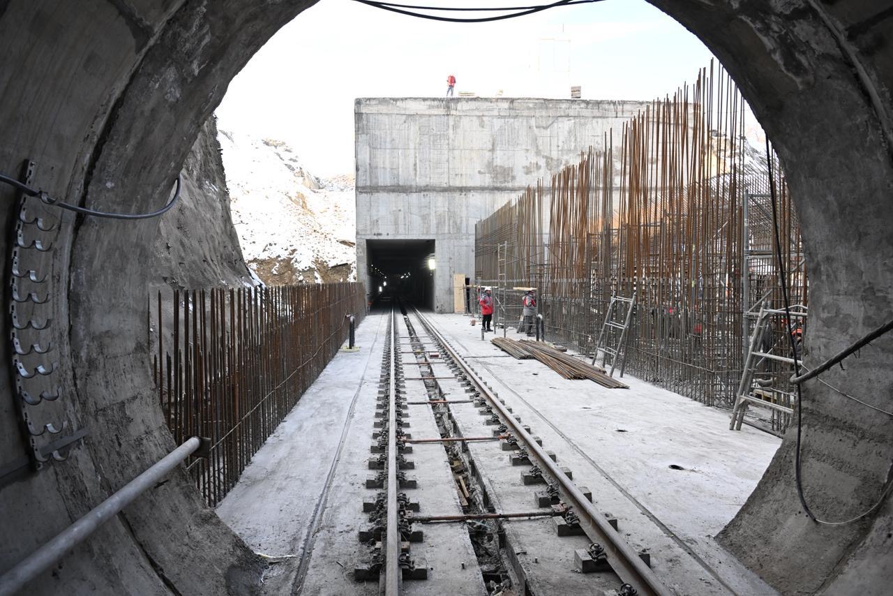 Сонымен қатар оң жақ аралық тоннельді қазу жұмыстары жалғасуда. Қазіргі таңда жоспарланған 1 590 метрдің 1 390 метрі қазылды. Жұмыс тәулік бойы жүргізілуде. Дайын бөлігінде рельстер төселіп, инженерлік желілерді монтаждау жалғасып жатыр.