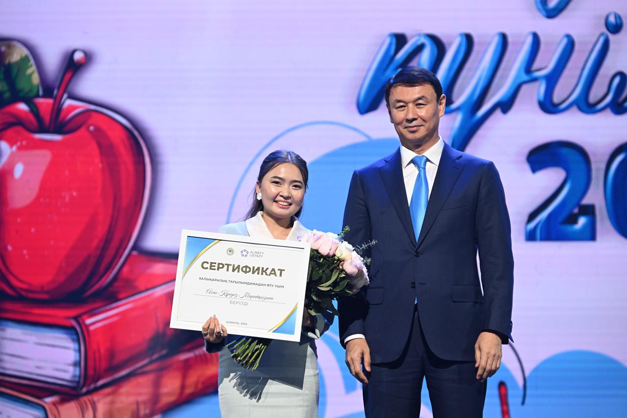 «Біз әрқашан педагогтарды қолдаймыз. Алматыда төртінші жыл қатарынан «Алматы Ұстазы» байқауы өтуде. Бұл кәсіби дамуға және тәжірибе алмасуға арналған алаңға айналды. Үздік ұстаздар Финляндия, Сингапур, Эстония сынды алдыңғы қатарлы елдердің мектептерінде тағылымдамадан өтіп жүр. Биыл бұл тізімге Қытай Халық Республикасы да қосылды», – деді қала әкімі.