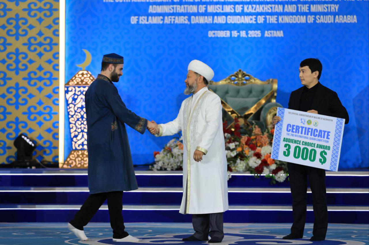 ҚМДБ Төрағасы, Бас мүфти Наурызбай қажы Тағанұлы Палестиналық қариға «Көрермен көзайымы» номинациясын табыстап, жамағат атынан 3000 АҚШ доллары көлемінде ақшалай марапат табыстады.