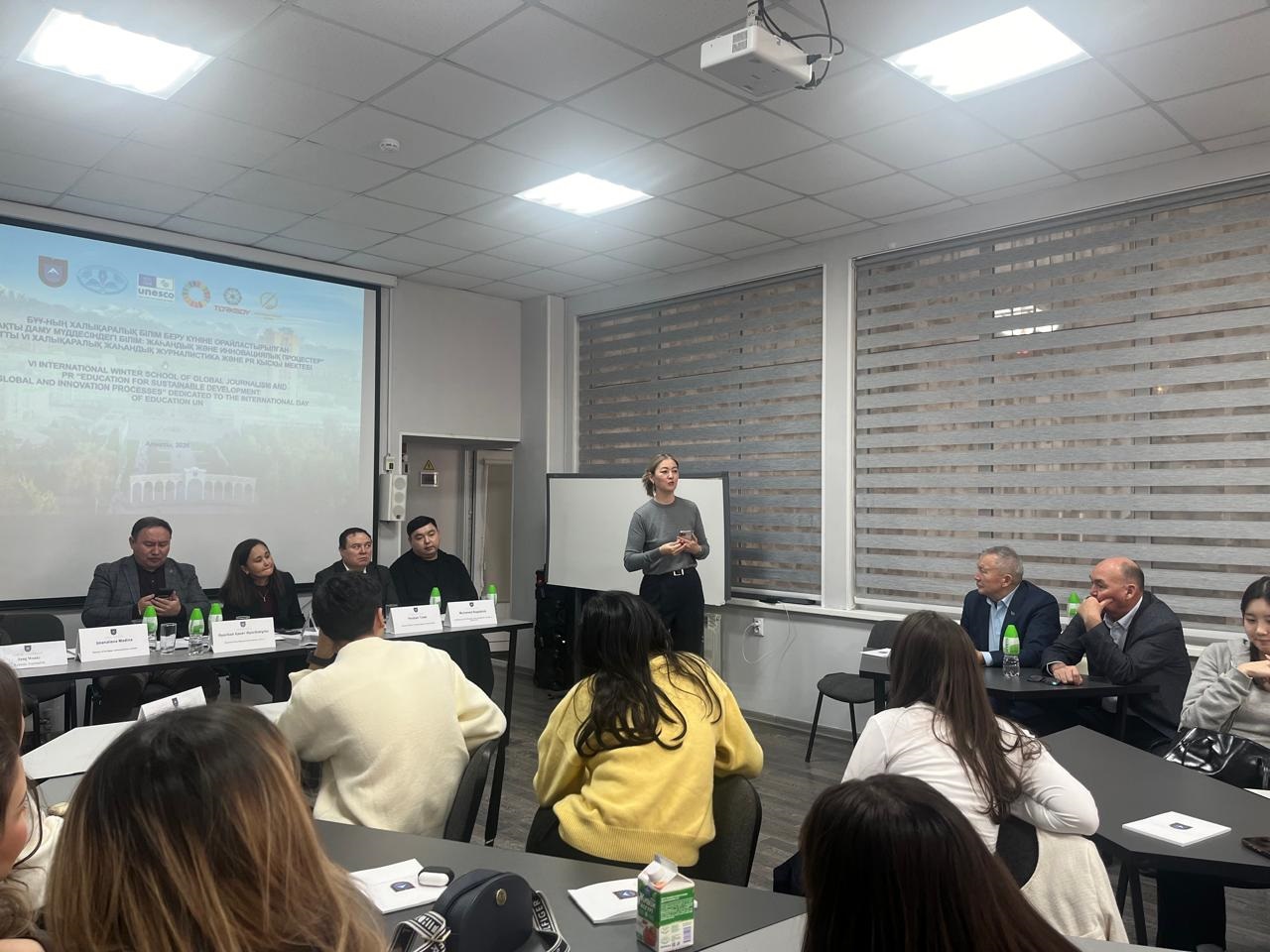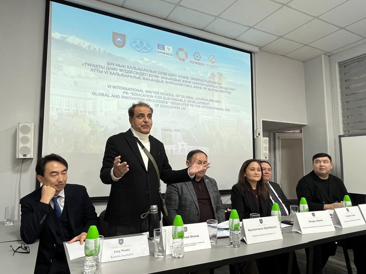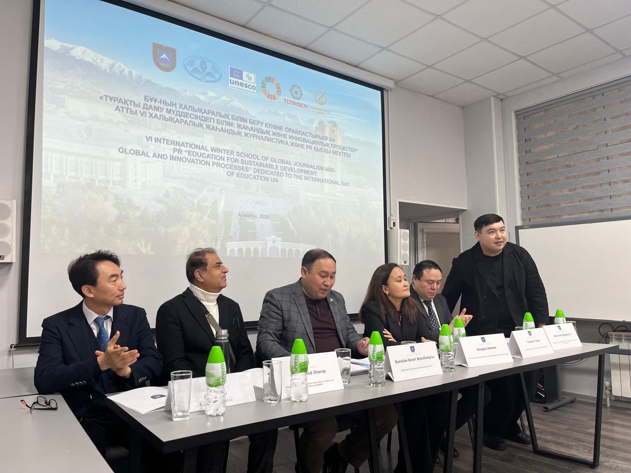 Әл-Фараби атындағы Қазақ ұлттық университеті журналистика факультетінің ЮНЕСКО-ның журналистика және коммуникация кафедрасының ұйымдастыруымен 2026 жылдың 26 қаңтарында Алматы қаласы «Тау-Тұран» демалыс базасында БҰҰ-ның халықаралық білім беру күніне орайластырылған «Тұрақты даму мүддесіндегі білім: жаһандық және инновациялық процестер» атты VI халықаралық жаһандық журналистика және шығыстану қысқы мектебінің ашылу салтанаты өтті.