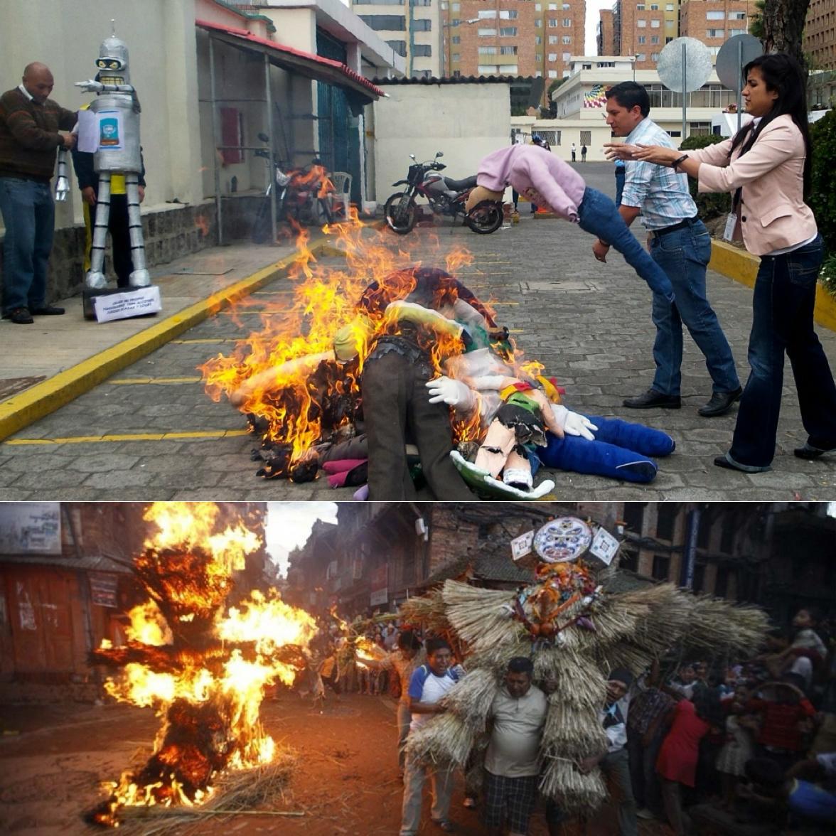 Ал Эквадорда түн ортасында қуыршақтар өртеледі. "Жесірлердің жылауы" деп аталатын бұл рәсім кезінде олар өздерінің "жаман күйеулерін" еске алады.