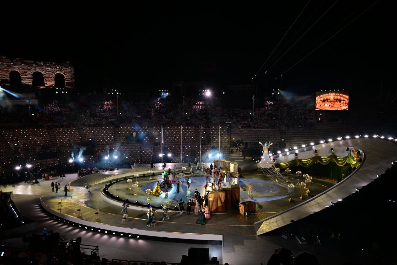 Ауқымды шара Еуропадағы ең әйгілі тарихи нысандардың бірі – екі мың жылдан астам тарихы бар, ЮНЕСКО-ның Бүкіләлемдік мұралар тізіміне енген Арена ди Верона амфитеатрында ұйымдастырылды. Қысқы Олимпиада тарихында алғаш рет жабылу рәсімі көне амфитеатрда өтіп, тарихи орын заманауи сахна алаңына айналды, – деп хабарлайды aqshamnews.kz.