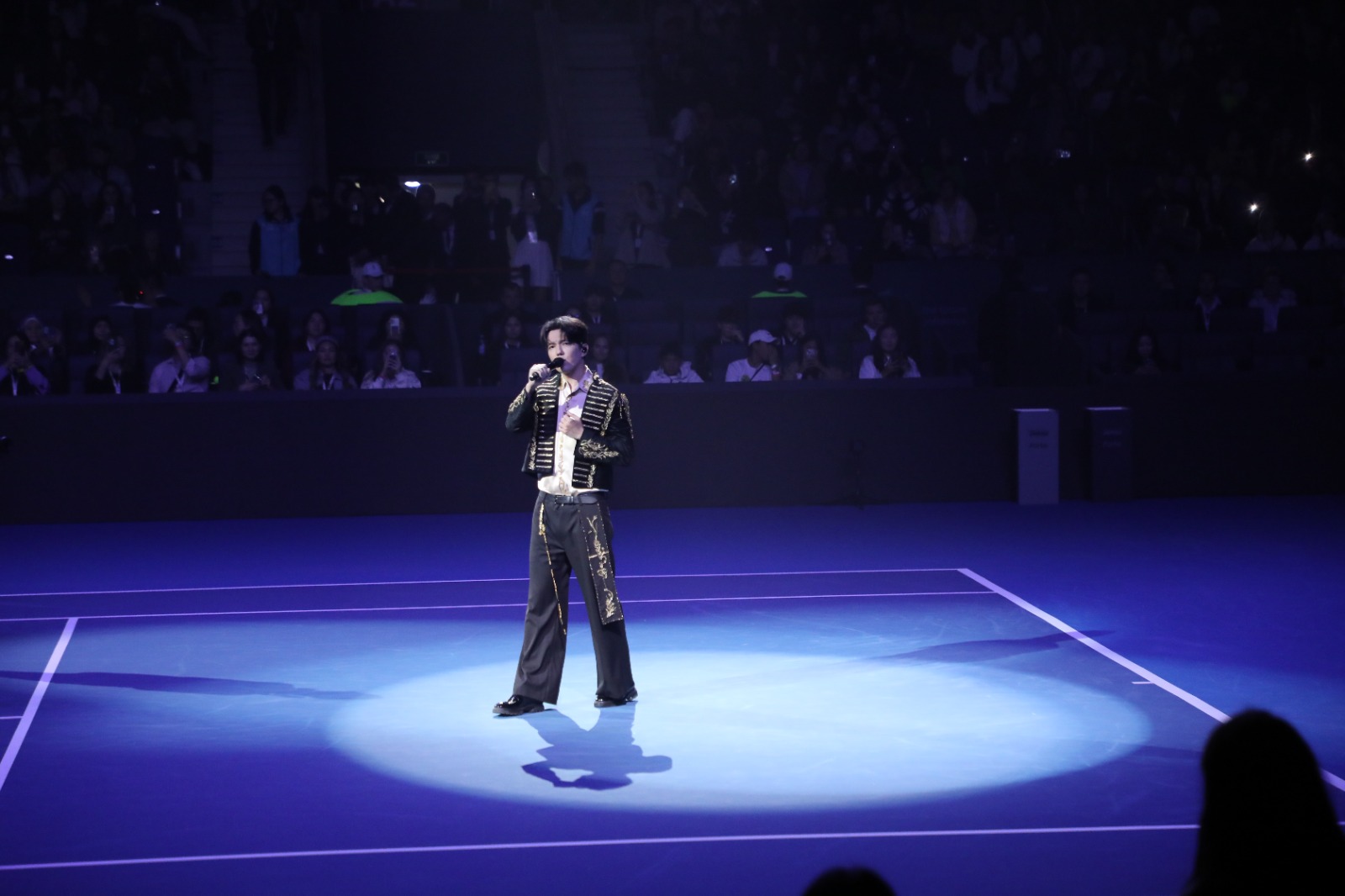 Димаш өнер көрсетіп болған соң, кортқа қазақстандық теннисші, әлемнің 91-ракеткасы Александр Шевченко мен әлемнің 79-ракеткасы, сербиялық Ласло Джере шықты.