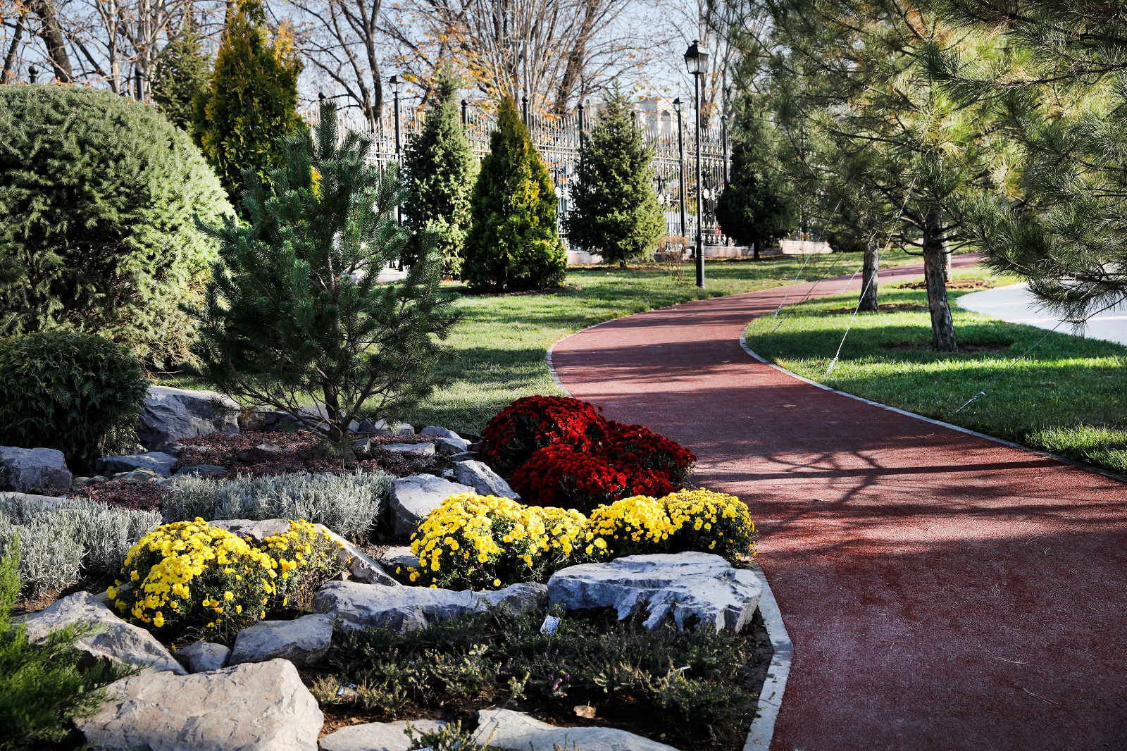 Жаяу және жүгіру жолдары төселген, автосуару және жарықтандыру жүйелері орнатылған.