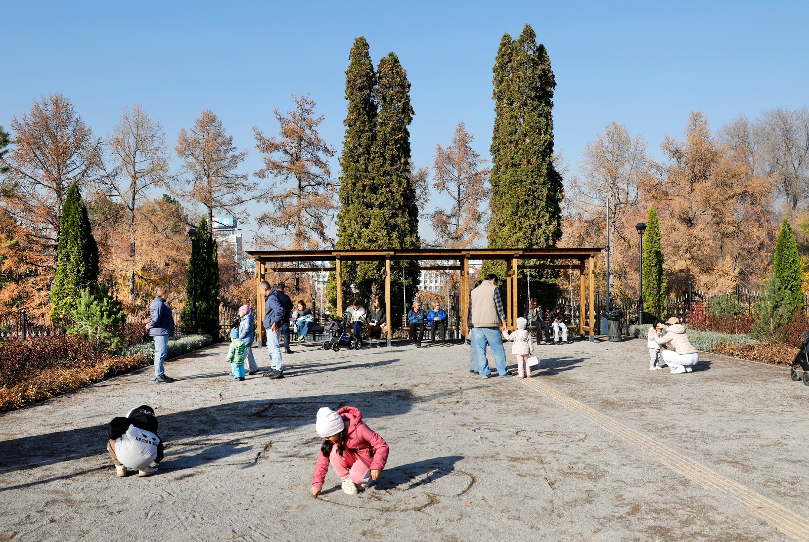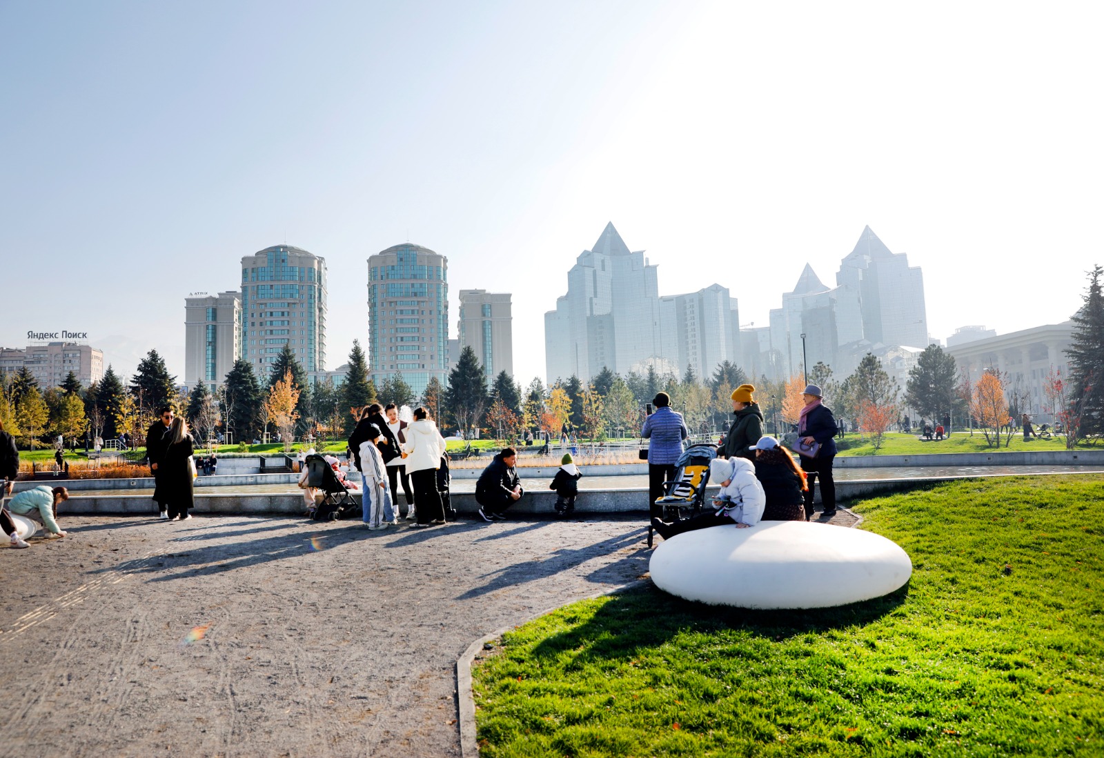Саябақ қаланың ортасында орналасқан соң, тек демалыста емес, жұмыс күндерінде де, тіпті түсте де адам көп.