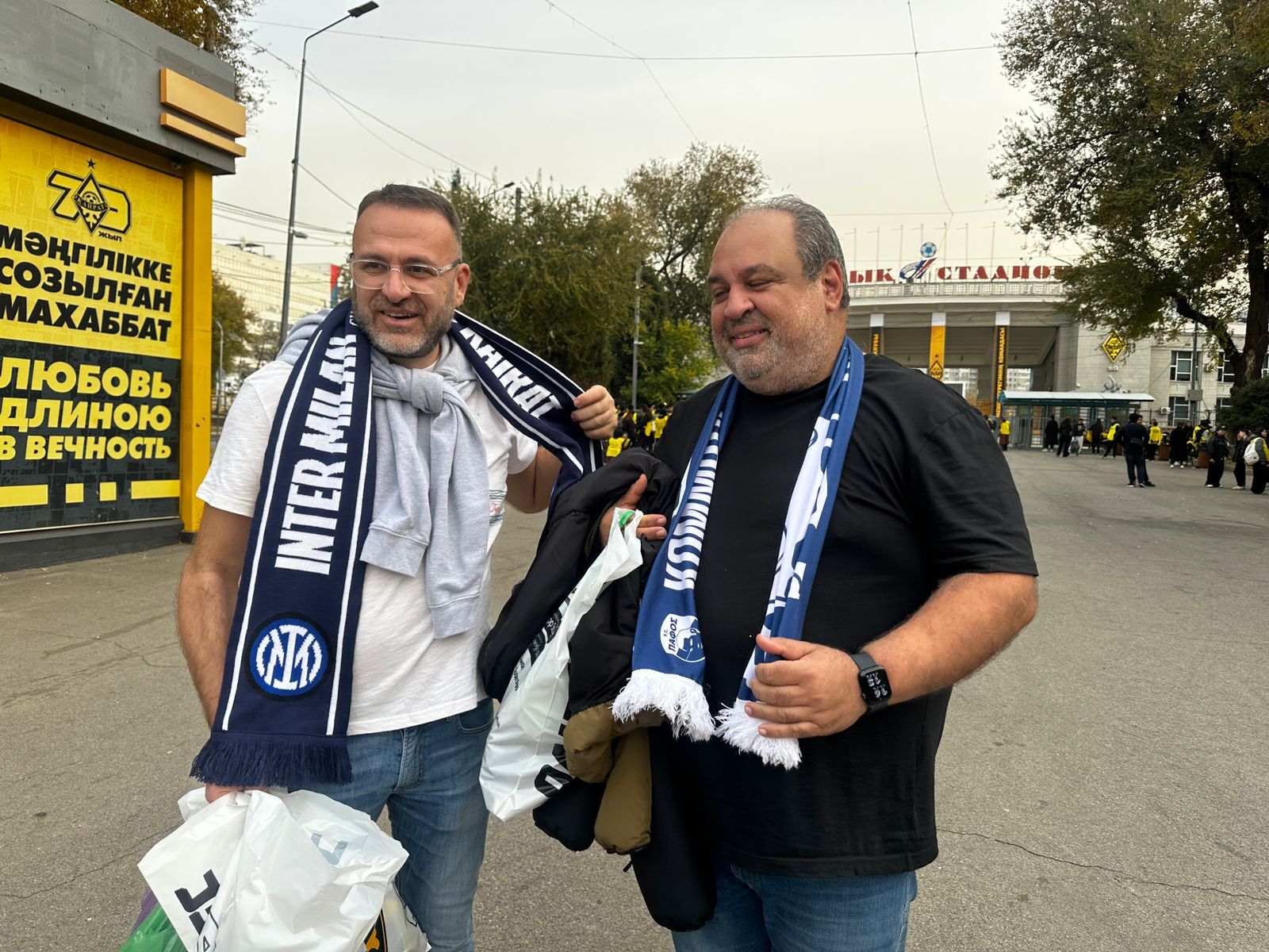 Құқық қорғау қызметкерлері мен волонтерлермен қатар, стадион аумағында екі команданың жанкүйерлері де жиналып жатыр. Өз командасын қолдау үшін Алматыға Кипрдан да шетелдік жанкүйерлер келді.