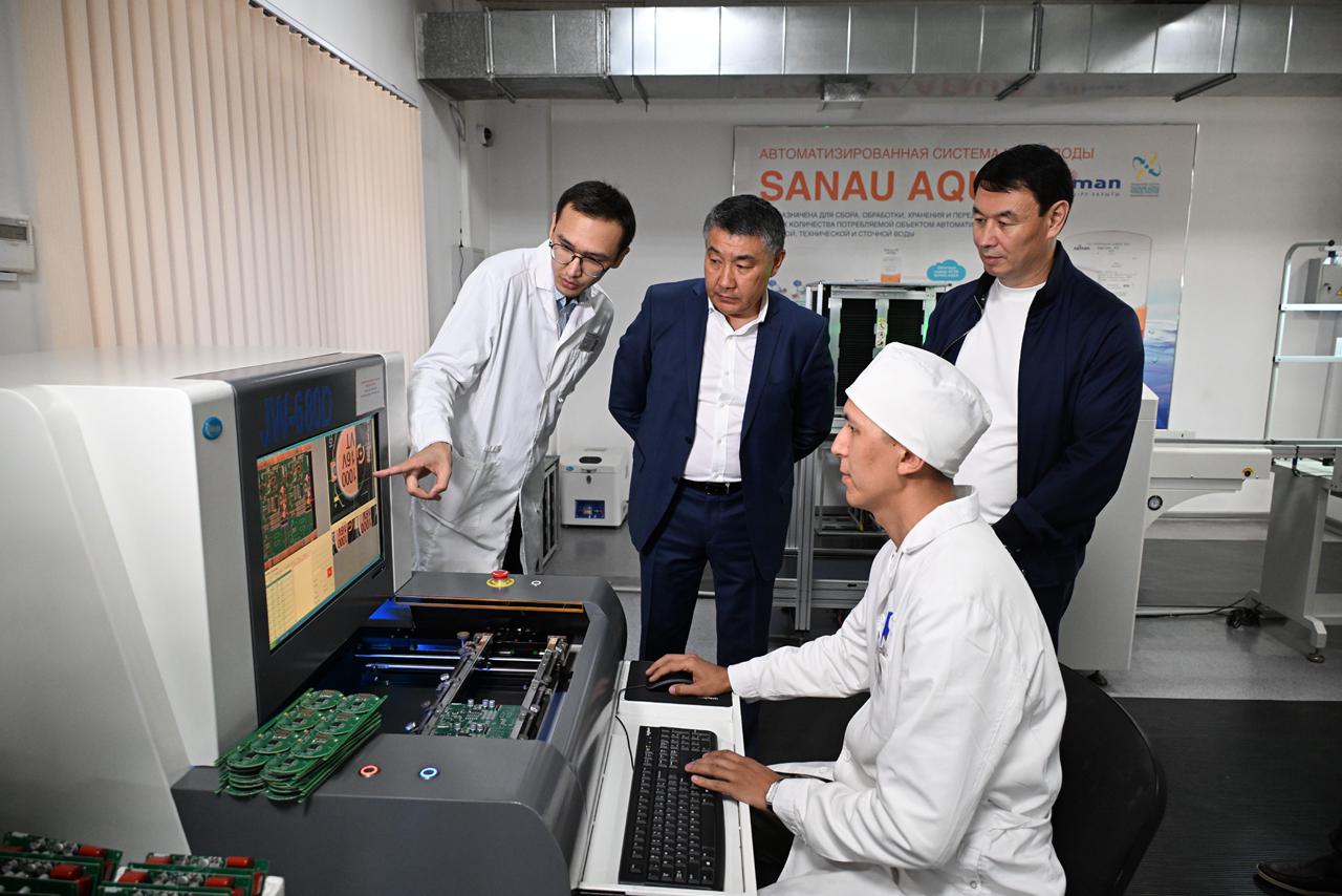 «Saıman korporasıasynda» Darhan Satybaldy esepke alý aspaptary óndirisiniń joǵary deńgeıin atap ótti. Kásiporynda 180 adam eńbek etedi, olardyń basym bóligi – jergilikti JOO túlekteri. Kásiporynnyń jobalyq qýaty – jylyna 800 myń aspap, al jyl saıynǵy naqty óndiris kólemi – 500 myń dana.
