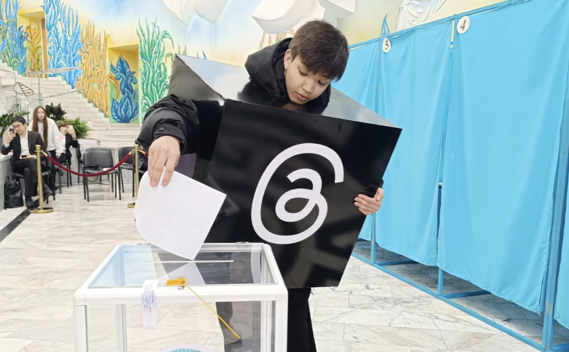 Alǵash ret dauys bergen jastar da az bolmady. 18 jasqa endí tolǵan student Nūrsūltan Dadyl Threads áleumettík jelísíníń kostyumín kıíp keldí. Tanymal platformanyń logotıpí beınelengen kıím tūrǵyndardyń nazaryn audaryp, kópshílígí ony suretke túsíríp jatty.