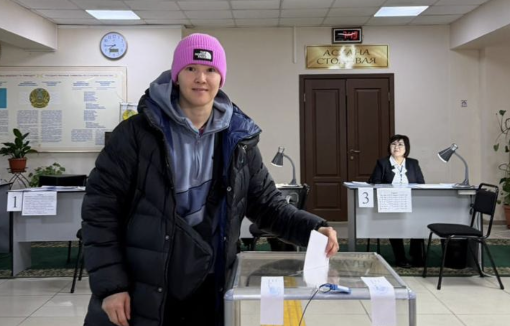Bokstan Olımpıada chempıony Ermahan Ibraımov referendumda otbasymen bírge kelíp dauys berdí.