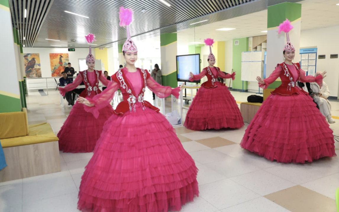 «B. Momyshūly» metro beketínde bı performansy óttí. «Alatau dástúrlí óner teatrynyń» artısterí ūlttyq naqysh pen serpíndí yrǵaqqa toly áserlí bı oryndady.
