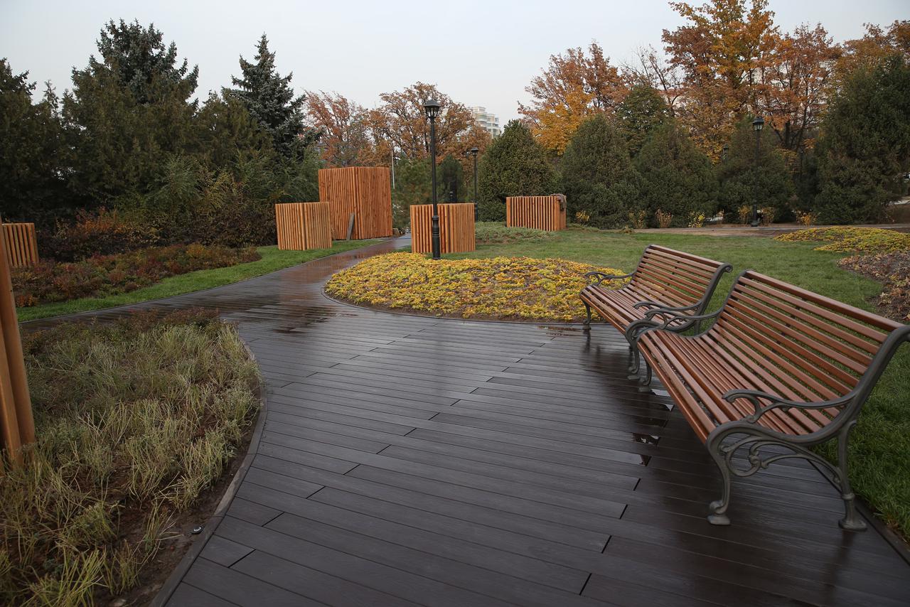 سكۆەر اۋماعىندا قىستا مۇز ايدىنى رەتىندە پايدالانىلاتىن توعان سالىندى. بۇگىندە جۇرگىنشىلەر مەن جۇگىرۋ جولدارى، اسفالت جابىندىسى، اۆتوسۋارۋ جانە سىرتقى جارىقتاندىرۋ جۇيەسىن ورناتۋ جۇمىستارى اياقتالۋعا جاقىن. 95 قىلقانجاپىراقتى جانە 228 جاپىراقتى كوشەت وتىرعىزىلدى، قوسىمشا 469 قىلقانجاپىراقتى جانە 384 جاپىراقتى بۇتا، سونداي-اق كوپجىلدىق وسىمدىكتەر ەگىلگەن. سونىمەن قاتار ەسكى قورشاۋدىڭ مەتالل قۇرىلىمدارى مەن ىرگەتاسىنا رەستاۆراسيا جۇمىستارى جۇرگىزىلىپ جاتىر.