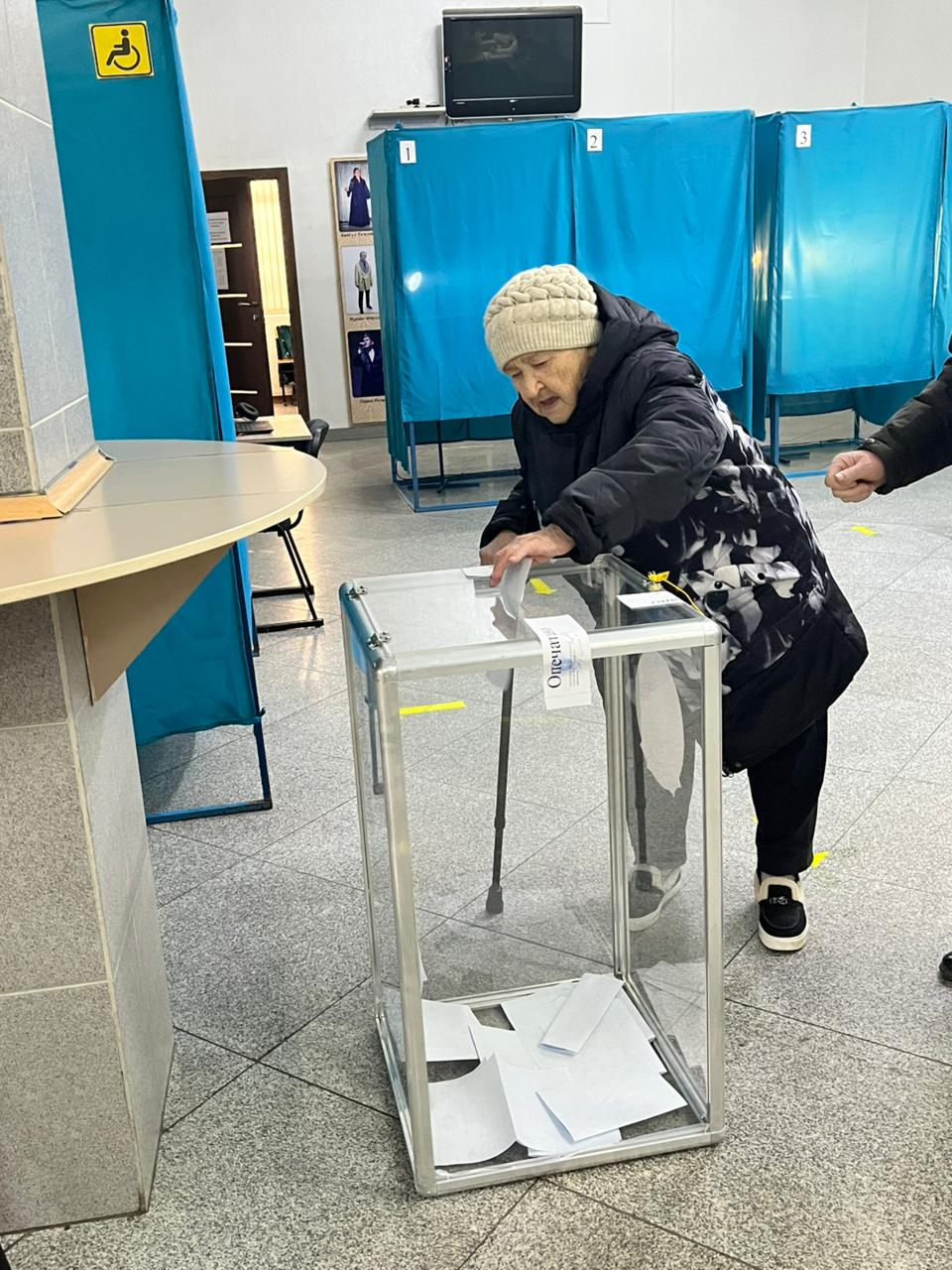 بنشءى ماقپال جءۇنءىسوۆا قىزى - مەرەيмەن بءىرگە داۋىس بەرۋگە كەلدءى.