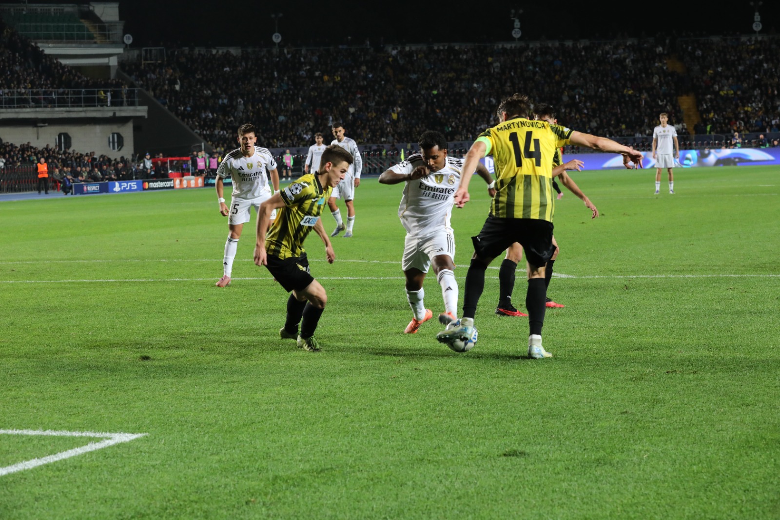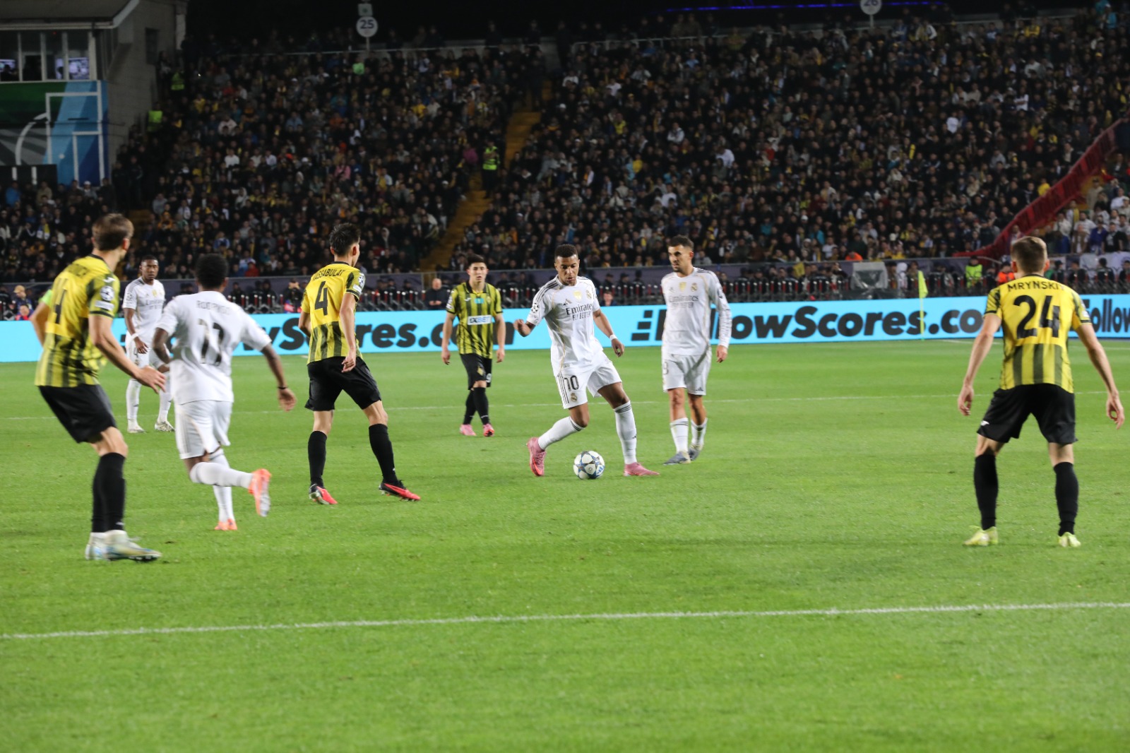 ماچ ەكىنشى تۋر اياسىندا ءوتتى. ويىننىڭ العاشقى مينۋتتارىنان-اق قوس كوماندانىڭ باستى جۇلدىزدارى الاڭعا شىقتى: كيليان مباپپە، ۆينيسيۋس جۋنيور، داستان ساتپايەۆ پەن شەرحان قالمۇرزا.