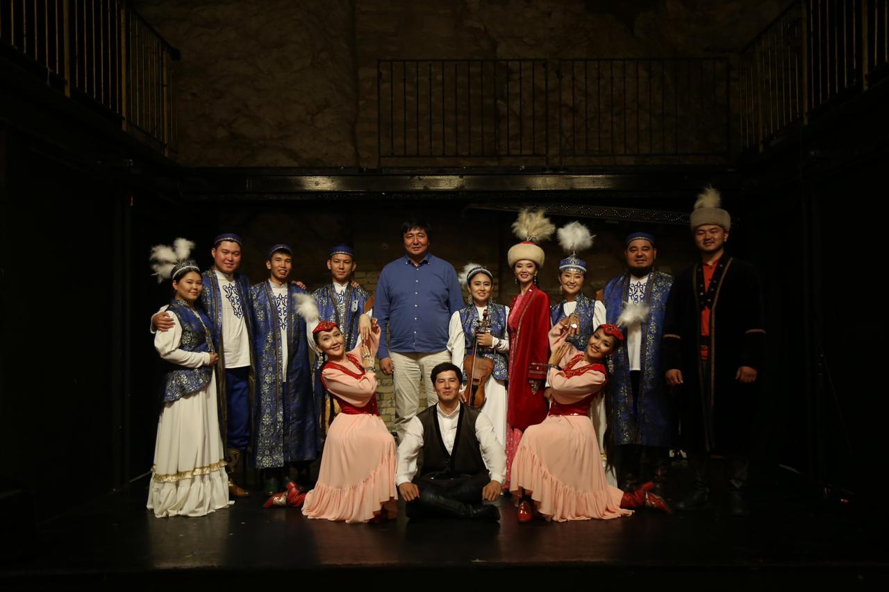 تەاتردىڭ بارلىق قويىلىمدارى – جاندى داۋىستا، 20-دان استام ۇلتتىق اسپاپتى مەڭگەرگەن «الاتاۋ» ەتنو-فولكلورلىق ءانسامبلىنىڭ سۇيەمەلدەۋىمەن ءوتتى. سونىمەن قاتار، ترۋپپا قۇرامىندا كاسىبي بي ءانسامبلى، ءداستۇرلى انشىلەر، اقىندار مەن جاس اكتەرلەر ونەر كورسەتتى.